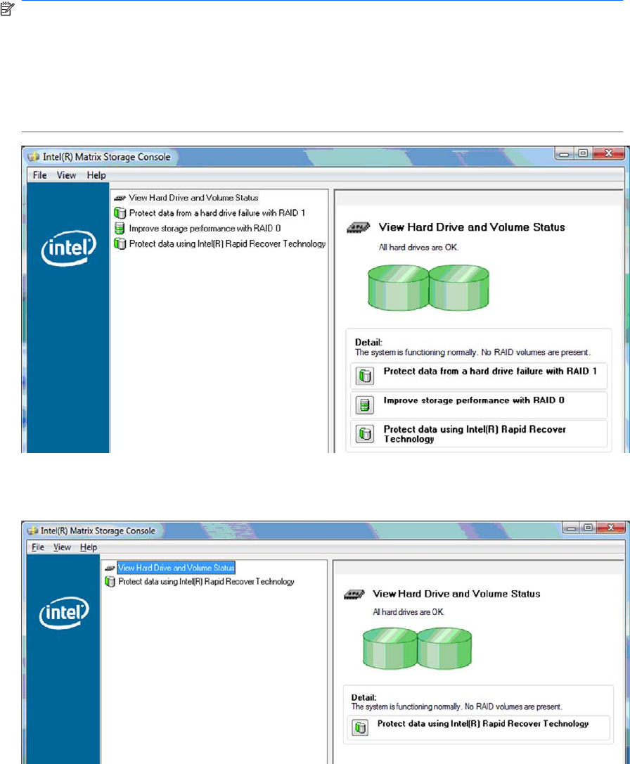 1. Åbn Intel Matrix Storage Console ved at vælge Start > Alle programmer > Intel Matrix Storage