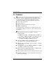 Product Description Table 1-8 Bottom Components (Continued) Item Component Function 4 Label areas (2) Contain the notebook serial number and other applicable regulatory labels. 5 Exhaust vents (3) Provide airflow to cool internal components. Ä 6 Mini PCI compartment To prevent overheating, do not obstruct vents. Do not allow a hard surface, such as a printer, or a soft surface, such as pillows, thick rugs or clothing, to block airflow. Holds an optional wireless LAN device.