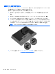 2. プラスチック製のタブをコンピューターの中心方向に引っ張り(3)、ハードドライブをコネクタ