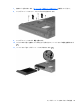 1. ハードドライブをハードドライブ ベイに傾けながら挿入し(1)、ハードドライブ ベイ内に水平