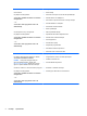 Alfabētiskais rādītājs Simboli/Skaitļi 1394 ports, identificēšana 12 A akumulatora fiksators 15 akumulatora indikators 10 akumulatora nodalījums 15, 57 akumulators, maiņa 33 apakšējais vāks, noņemšana vai nomaiņa 35 apakšējā vāka fiksators, identificēšana 15 atkopšanas nodalījums 50, 54 atmiņas modulis ievietošana 43 izņemšana 43 maiņa 42 atmiņas moduļa nodalījums, identificēšana 16 audio ievades (mikrofona) ligzda 11 audio izvades (austiņu) ligzda 11 autentiskuma sertifikāta uzlīme 57 Ā ārējā monitora p