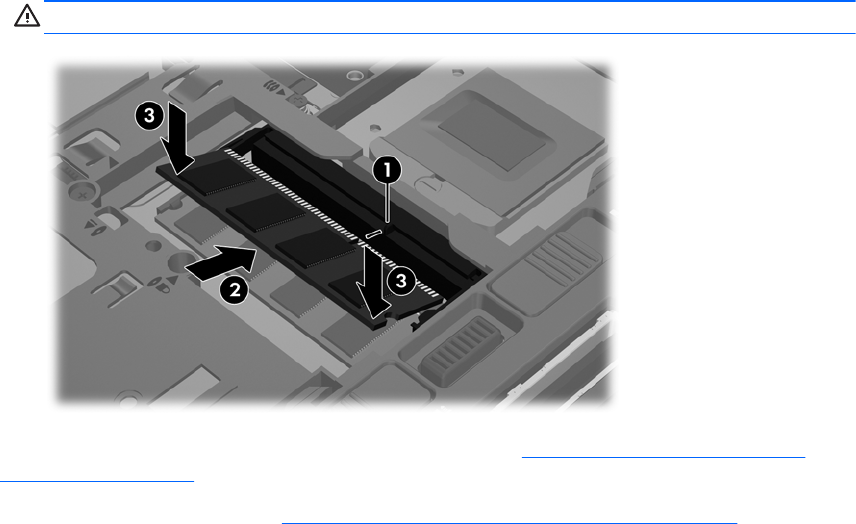 в. Обережно притискайте модуль пам’яті (3) з обох країв, доки фіксатори не стануть на