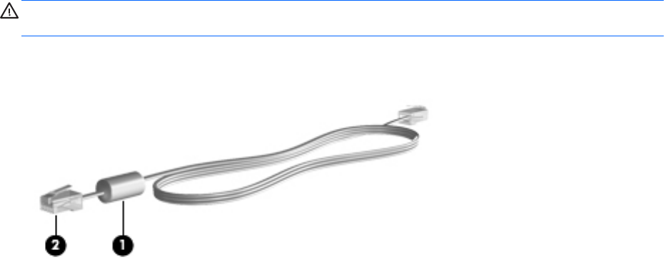 必须使用 6 针 RJ-11 调制解调器电缆(需单独购买)将调制解调器连接到模拟电话线上。在某些国