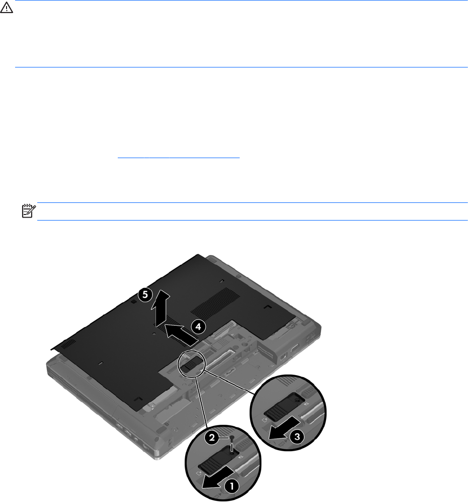3. 将底盖滑向笔记本计算机的前方 (4) 并抬起 (5) 以卸下盖板。