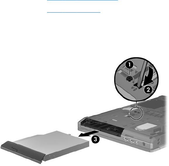 9. 使用平头螺丝刀轻推卡舌以释放光驱 (2)。