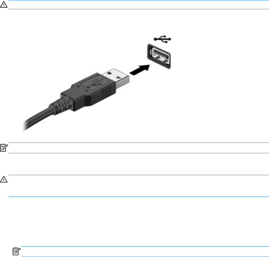 注意: 为防止损坏 USB 连接器,请轻轻插入 USB 设备。