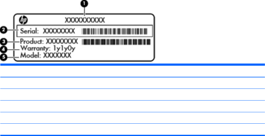 HP 移动宽带模块序列号标签(仅限某些机型)- 提供 HP 移动宽带模块的序列号。该标签贴在