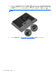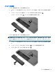 2. バッテリ ベイが手前を向くようにして置き、底面カバーのリリース ラッチを左方向にスライド