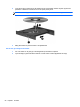 2. Ta ut skivan (3) ur facket genom att försiktigt trycka ned spindeln medan du lyfter upp skivans