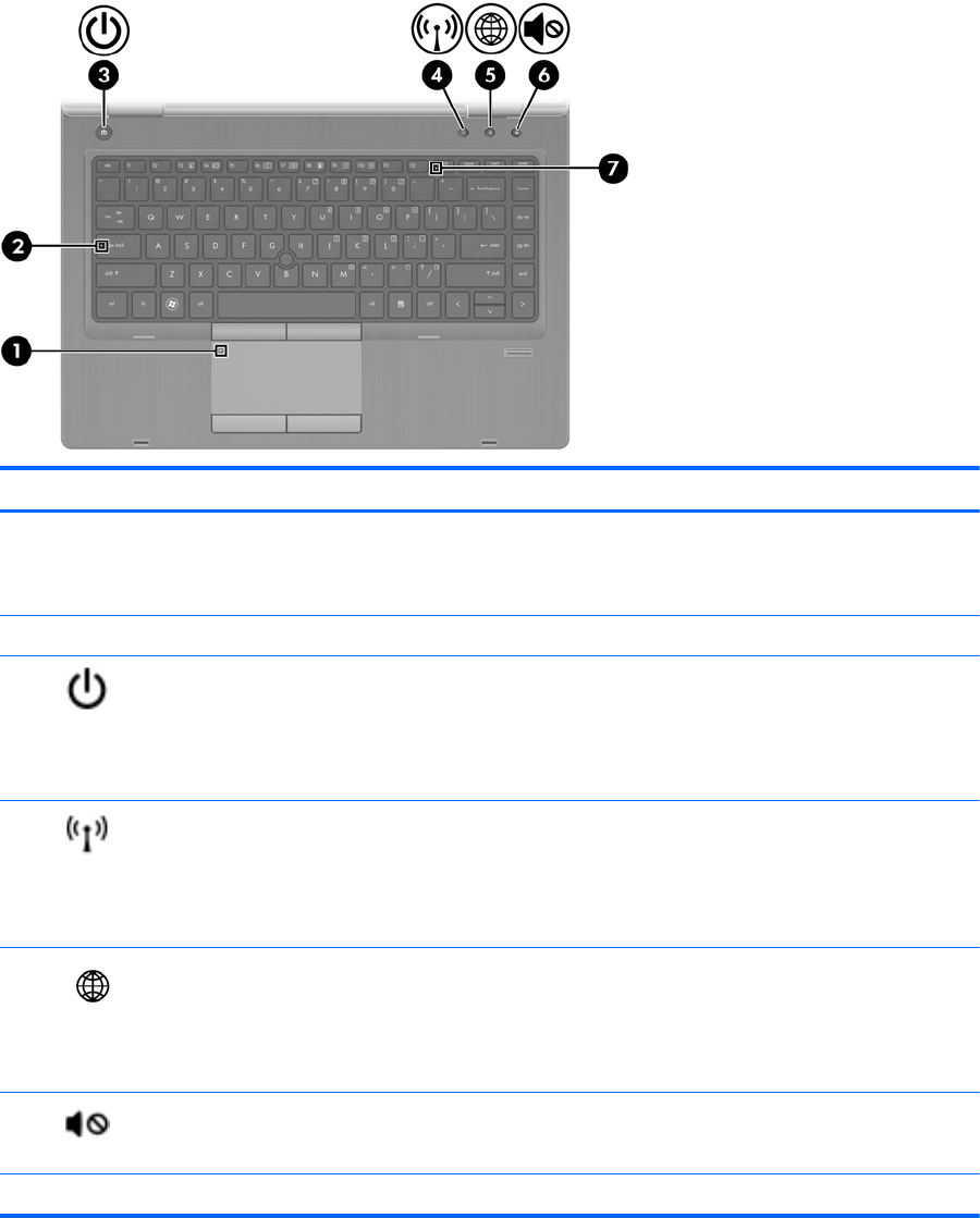 ● Nie świeci: płytka dotykowa TouchPad jest włączona.