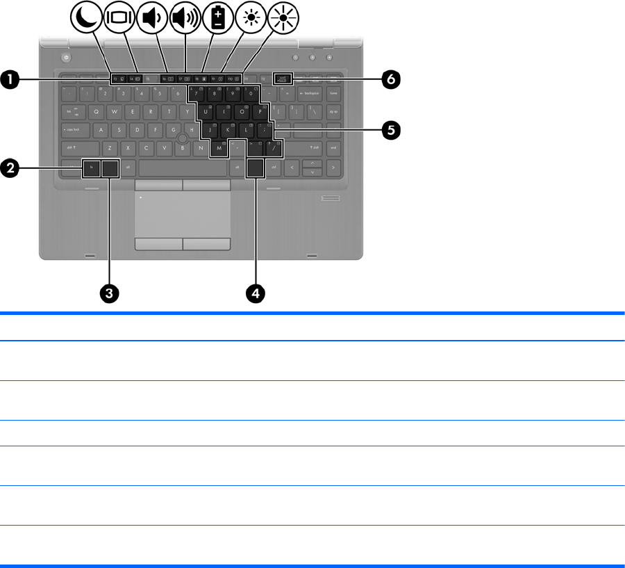 (6) Klawisz num lk Włącza/wyłącza wbudowaną klawiaturę numeryczną po