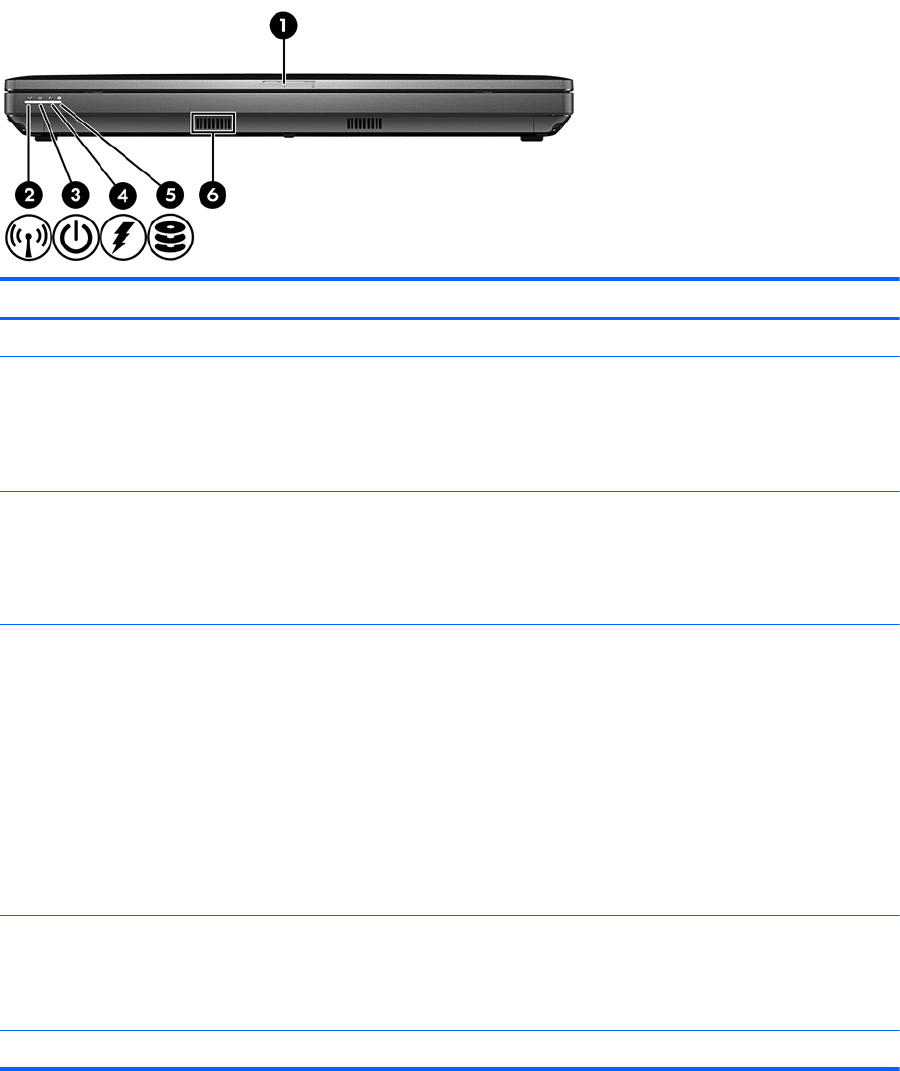 (5) Wskaźnik dysku twardego ● Miga na biało: Komputer korzysta z dysku twardego lub