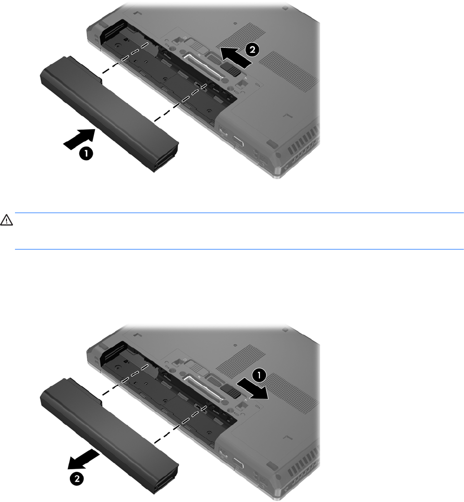 2. Włóż baterię (1) do wnęki, aż zostanie prawidłowo osadzona.