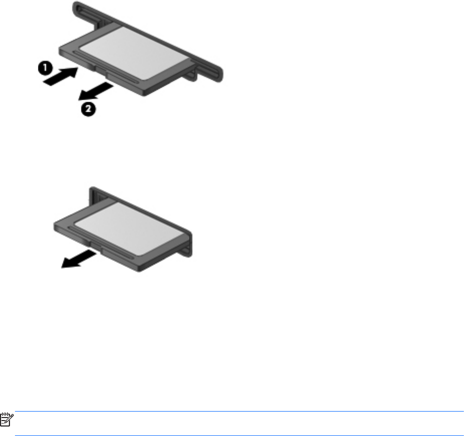 3. Dociśnij kartę (1), a następnie wyjmij ją z gniazda (2).