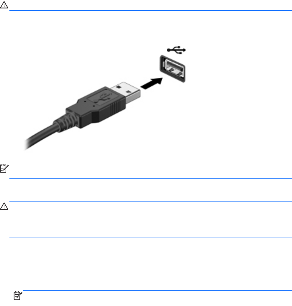 OSTROŻNIE: Aby uniknąć uszkodzenia złącza USB, urządzenia należy podłączać delikatnie.