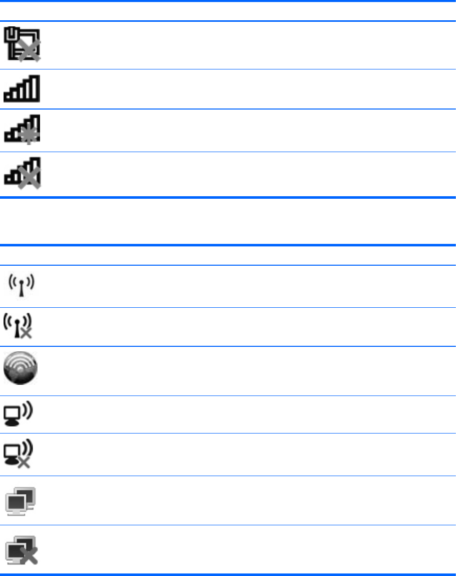 Omrežje (povezano) Prikazuje, da je ena ali več omrežnih naprav povezanih z omrežjem.