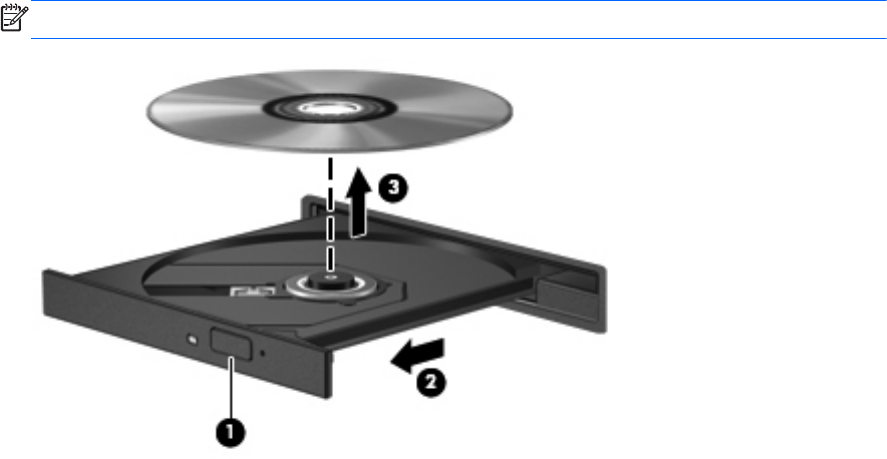 1. Pritisnite gumb za sprostitev (1) na okvirju pogona, da sprostite pladenj, nato pa ga (2) previdno