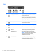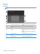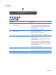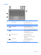 (1)   Tænd/sluk-knap til TouchPad Tænder og slukker TouchPad.
