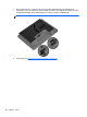 4. Mens batterirummet er vendt mod dig, skal du skubbe udløserknappen til bunddækslet til