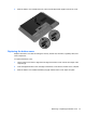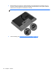 4. With the battery bay toward you, slide the bottom cover release latch to the left (3), and if you