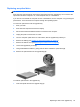 1. Insert the end of a paper clip (1) into the release access in the front bezel of the drive.