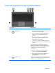 (1) Display-Entriegelungsschieber Zum Öffnen des Computers.