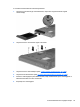 4. Fordítsa maga felé az akkumulátorrekeszt, húzza balra a hátsó fedőlap kioldóreteszét (3), és ha