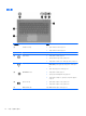 (1)   터치패드 켜기/끄기 버튼 터치패드를 켜거나 끕니다.