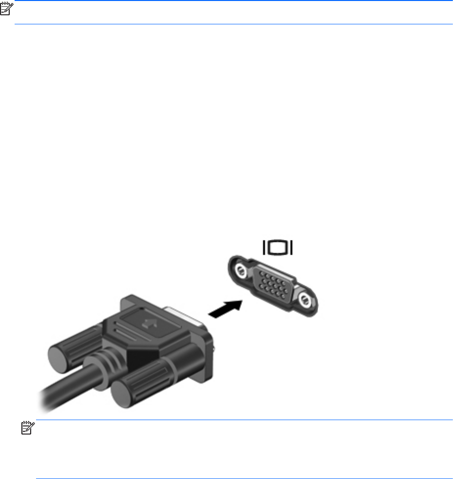 Jei norite prijungti VGA vaizdo įrenginį, prijunkite įrenginio kabelį prie išorinio monitoriaus