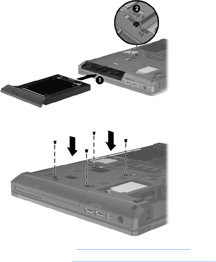 1. Įstatykite standųjį diską (1) į plėtimo skyrių, tada priveržkite plėtimo skyriaus varžtą (2).