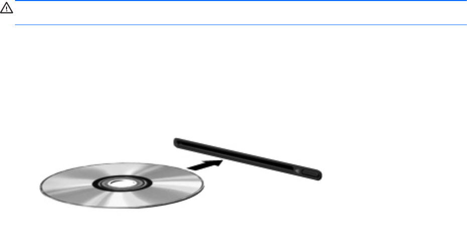 3. Švelniai pastumkite diską į optinių diskų įrenginio angą.