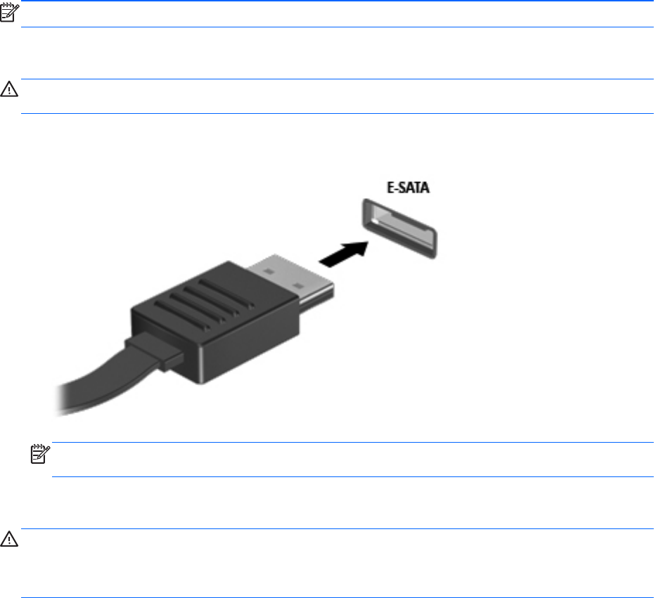 ĮSPĖJIMAS: kad nesugadintumėte „eSATA“ prievado jungties, jungdami įrenginį stipriai