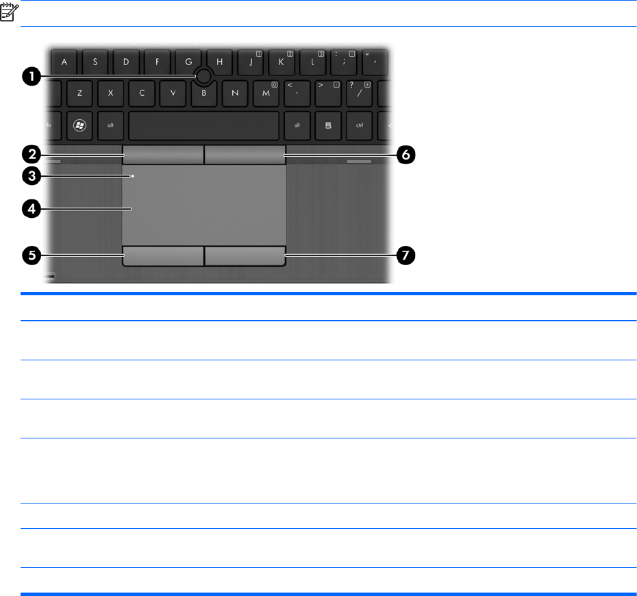 (7)   Desno dugme dodirne table Funkcioniše kao desno dugme na spoljašnjem mišu.
