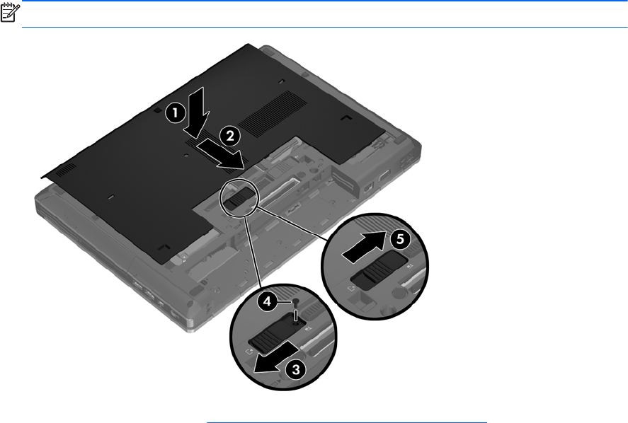 Povucite rezu za otpuštanje nadesno da biste zaključali donji poklopac (5).
