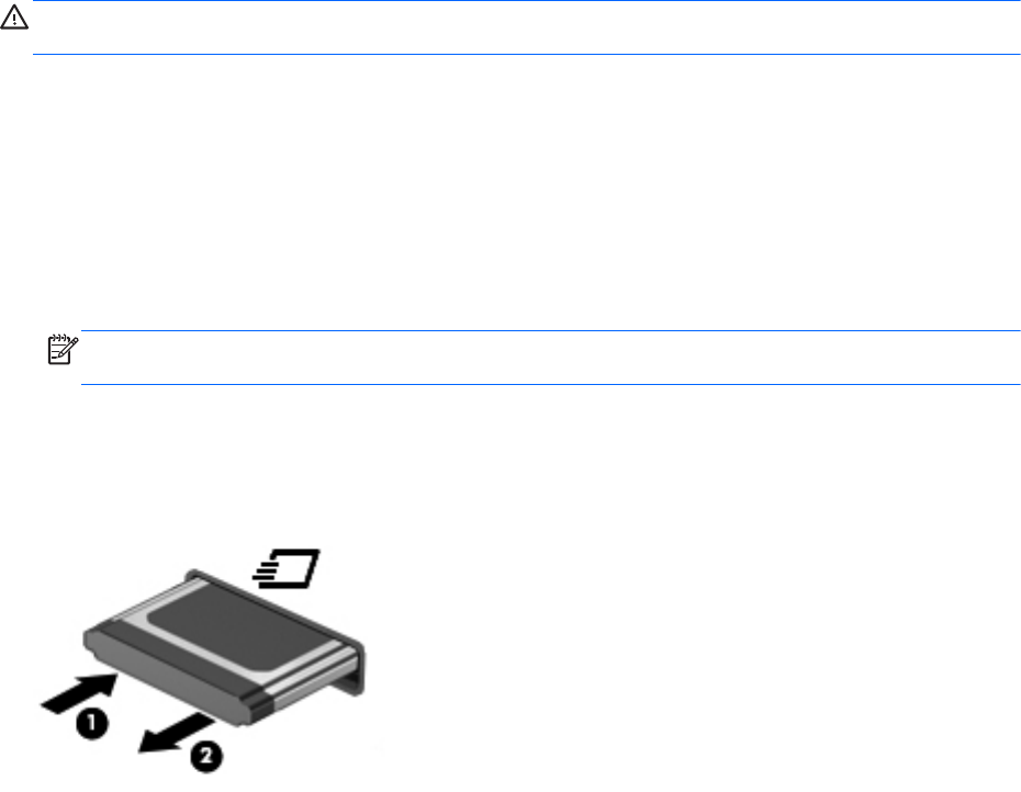 b. Izvucite ExpressCard karticu iz konektora (2).