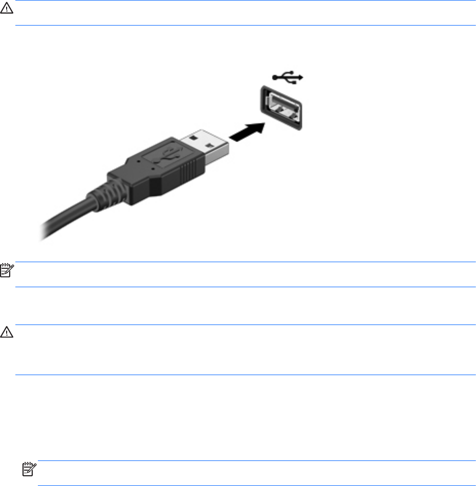 OPREZ: da biste sprečili oštećenja USB konektora, koristite minimalnu silu da biste povezali USB