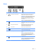 Rongga USB 2.0 (2) Menghubungkan perangkat USB opsional.