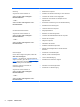 Index Symbole/Zahlen 1394-Anschluss 12 A Abdeckung an der Unterseite, Entfernen und Anbringen 35 Abdeckung an der Unterseite, Entriegelungsschieber 15 Akkuanzeige 10 Akku austauschen 33 Akku-Entriegelungsschieber 15 Akkufach 15, 60 Anschluss, Netzanschluss 12 Anschlüsse 1394 12 DisplayPort 11 eSATA 11 Externer Monitor 14 USB 11, 12 Audioausgangsbuchse (Kopfhörer) 11 Audioeingangsbuchse (Mikrofon) 11 B Betriebsanzeige 5, 10 Betriebssystem Microsoft Echtheitszertifikat, Etikett 60 Produktschlüssel 60 Betrieb