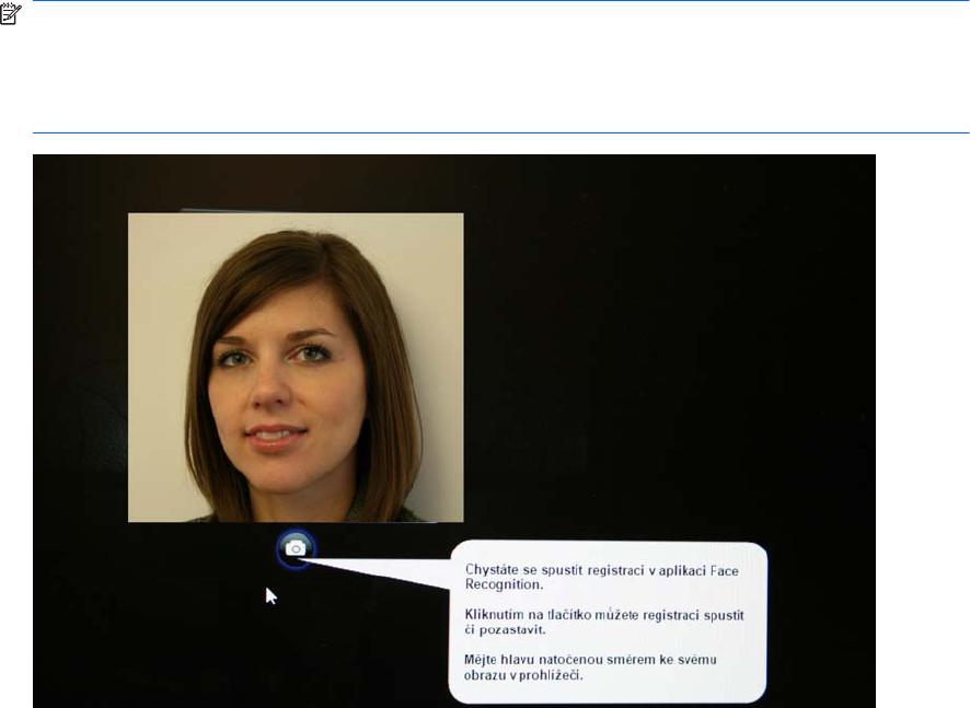 4. Přibližte se na vzdálenost 30 - 35 cm od webové kamery a kliknutím na tlačítko kamery zahajte
