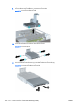 13. วางฮารดไดรฟ ไวที่ดานลางของโครงเหล็ก (1) แลวติดตั้งสกรูตัวนําสี่ตัวไวที่ดานขางของโครงเหล็กเพื่อยึดไดรฟ ไวใน
