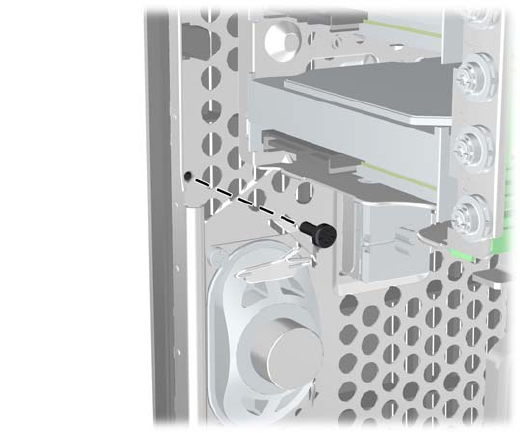 8. Установите винт с внутренней стороны корпуса в переднюю панель. Отверстие для винта