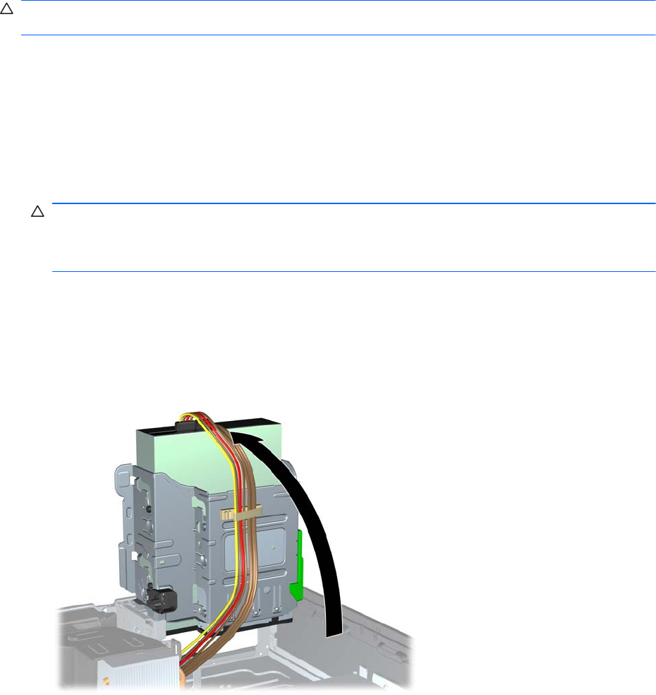 7. Поверните блок дисководов, чтобы привести его в вертикальное положение.
