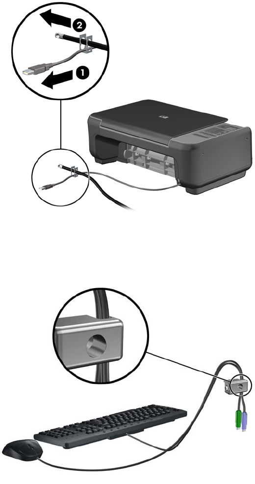 5. Пропустите кабели клавиатуры и мыши через замок, установленный на корпусе