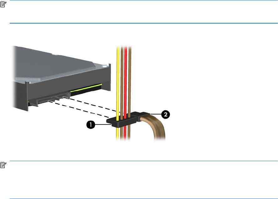 8. Подключите кабель питания (1) и кабель данных (2) к задней части жесткого диска.