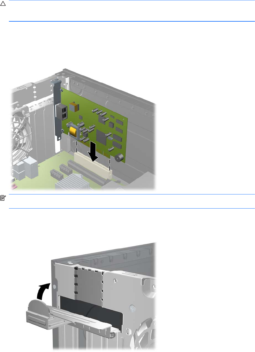 ПРИМЕЧАНИЕ. При установке платы расширения следует нажимать на плату