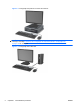 Figura 1-3 Configuraţia computerului cu factor de formă mic NOTĂ: Computerul cu factor de formă mic poate fi utilizat şi în configuraţie turn. Pentru mai multe informaţii, consultaţi Schimbarea din configuraţie de computer de birou în configuraţie turn, la pagina 99 din acest ghid.