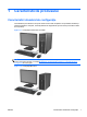 1 Caracteristicile produsului Caracteristici standard de configuraţie Caracteristicile pot fi diferite în funcţie de model. Pentru lista completă a componentelor hardware şi software instalate în computer, executaţi utilitarul de diagnosticare (inclus numai pe anumite modele de computere). Figura 1-1 Configuraţia miniturnului convertibil NOTĂ: Miniturnul convertibil HP Compaq poate fi transformat uşor într-un computer de birou.