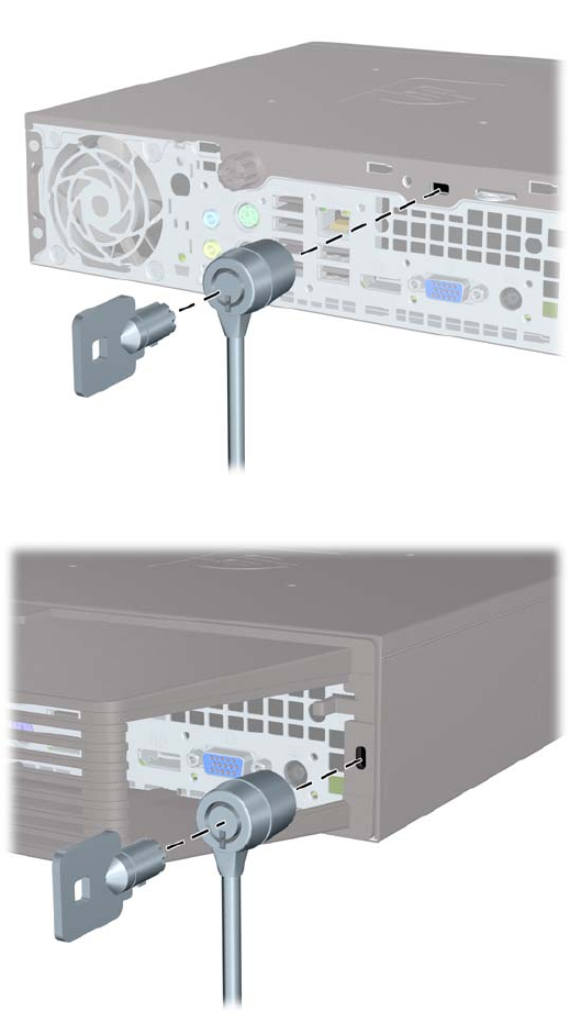 Figura 5-24 Instalarea unui dispozitiv de blocare cu cablu, fără capac de port