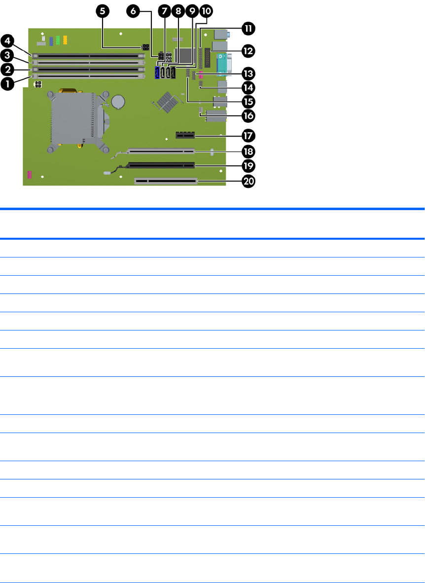 Jūsų modelio sistemos plokštės jungtys nurodytos toliau pateiktame paveikslėlyje ir lentelėje.