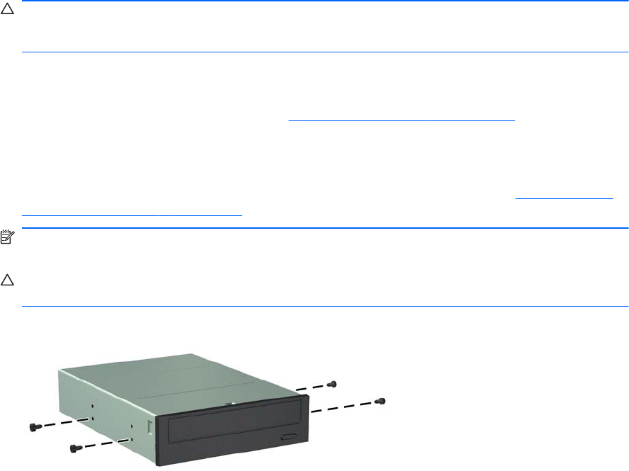 3-21 Iliustracija Kreipiamųjų varžtų įsukimas (parodytas optinis diskų įrenginys)